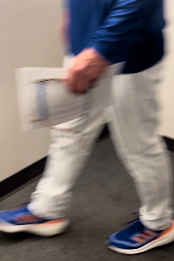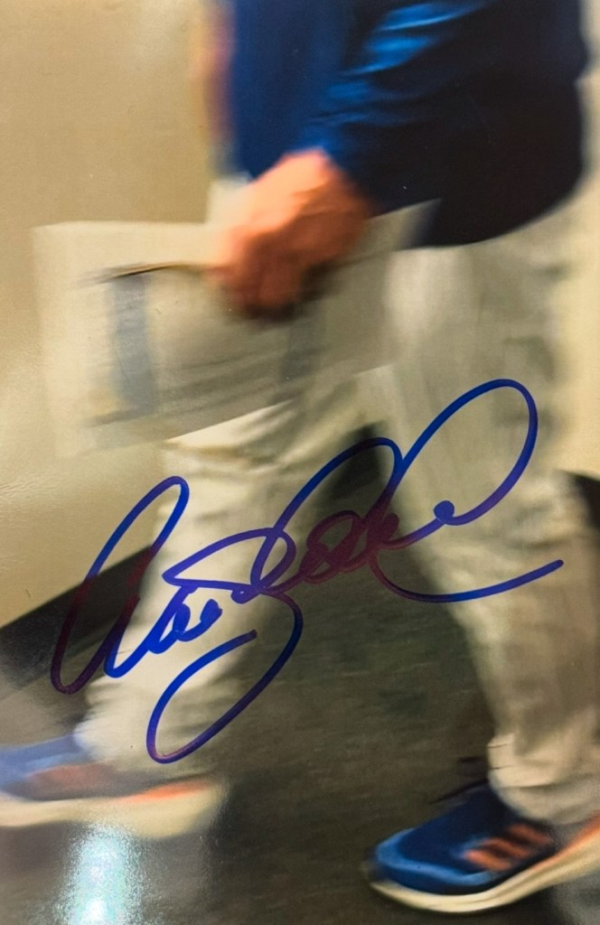 But this story did not end with my pitch. My catcher, Cubs mascot Clark, congratulated me after which we had a few photos taken. Then Lauren shared with me that she had tried to get fellow Bradley graduate and then Cubs center fielder Mike Tauchman to be my catcher. That would have been an incredible thrill, no offense to Clark. Nevertheless, the excitement was not yet over. Lauren led us back to the stands through a tunnel and up the players’ stairway. Manager Craig Counsell and some Cubs players were coming down as we were going up. I asked Craig for a quick photo but he had to get to the field. Darn! However, Diana took a photo of him. Someday I need to have him autograph it. 😁